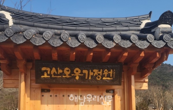 이번에 임시 개장한 고산 윤선도 오우가 정원 현판식의 글과 서각은 도원 송태정 박사의 도원체이다. 고산의 정취가 흐르는 오우가 정원을 관람한 후 선비의 점잖음을 닮은 현판글씨 관람도 권한다.