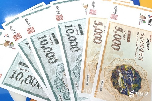 한편 해남군은 민생경제회복지원금을 군민 1인 20만원씩 총 131억원을 해남사랑상품권으로 지급했고 이번달 말에는 농어민 공익수당 88억원이 해남사랑상품권으로 지급된다.