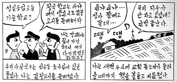 승우는 고등공민학교 3년을 마친 뒤에도 마음이 불편했다. 공민학교를 나오더라도 고등학교 입학 검정고시에 합격하지 않으면 고등학교에 갈 수 없었기 때문이다. 합격하더라도 고등학교에 갈 돈은 어떻게 할 것인가? 남의 논 일곱마지기를 부치는 승우네에게 희망은 없었다.