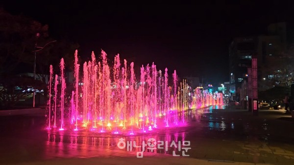 해남군민광장 음악분수가 조기 개통된다. 4월29일부터 5월1일까지 군민의 날 기념 이벤트와 5월8일 어버이날 기념 음원이 형형색색의 분수와 어우러진다. 5월25일부터 상시 가동될 음악분수는 공식 개통을 앞두고 지난주 시범 가동에 들어갔다.