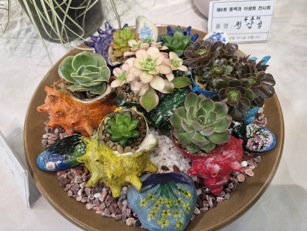이날 전시는 동백과야생화협회(회장 임영우)가 자체 예산으로 마련했다. 회원 20여명이 내놓은 작품은 200여점, 전시공간이 부족해 조금 내놓았다고 하지만 문화예술회관 로비를 가득 채웠다. 또 모든 작품이 수작이었고 작품 공간 배치도 빼어나다는 평가를 받았다.