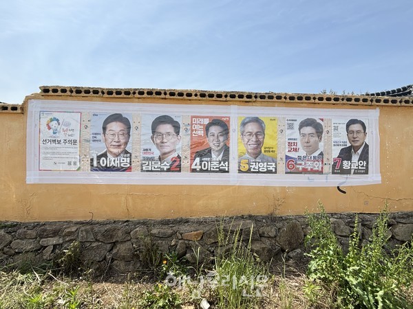 지난 제20대 대선 벽보는 총 14명, 이번 제21대 대선 벽보는 6명으로 확 줄었다. 그런데 기호 8번 무소속 송진호 후보 벽보가 없다. 기한 내 벽보를 제출하지 않았기 때문. 또 벽보는 부착됐지만 기호 6번 구주와 후보는 사퇴한 상태라 최종 후보는 6명이다.