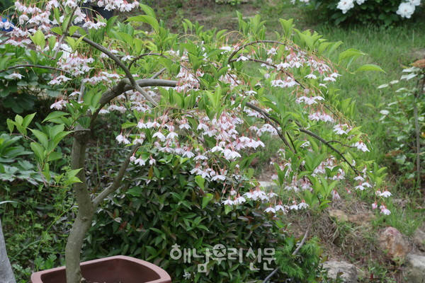 특히 한껏 가지를 축 늘어뜨린 능수 때죽나무는 전국에서 보기 귀할 정도로 풍채가 대단하다. 또 완도 약산에서 발견해 키우고 있는 무늬종 철화마삭줄도 특별하다.
