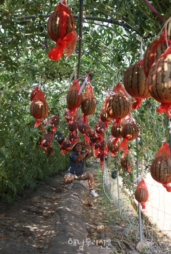 북평면 동해리에 위치한 농장에 미니수박이 공중에 탐스럽게 열려있다. 여름 내내 이웃들과 나눠 먹고자 심은 수박농사 풍년에 농부도 인심이 넉넉해진다. 조아름 기자 5340234@hanmail.net 다른기사 보기 저작권자 © 해남우리신문 무단전재 및 재배포 금지 당신만 안 본 뉴스 명찰보고 너 누구구나…55년 만에 재회 | 뿌리깊은 해남이야기 97 | 해남 땅이름 유래 (8) 북일면편 내년 지방선거, 도의원 선거구 바뀌나 곧 터질거라 했다… J프로젝트 관광도시 대통령도 움직였다 대대적인 노선 개편, 서부권 목포 구간 증설 요구 해남 청년들의 3중주 가을 음악회 가래떡·뻥튀기 나누며 우리쌀 소비운동 명찰보고 너 누구구나…55년 만에 재회 댓글삭제 삭제한 댓글은 다시 복구할 수 없습니다. 그래도 삭제하시겠습니까? 비밀번호 닫기 기사 댓글 0 댓글 접기 로그인 후 이용 가능합니다. 댓글 내용입력 비회원 로그인 이름 비밀번호 댓글 내용입력 댓글쓰기 계정을 선택하시면 로그인·계정인증을 통해 댓글을 남기실 수 있습니다. 회원 로그인 비회원 글쓰기 이름 비밀번호 자동등록방지 로그인 옵션 창닫기 주요기사 읍 공동화 막자…12월 초 민관협의체 발족 448억 태양광 패널 재처리시설, 국비 100% 해달라 대대적인 노선 개편, 서부권 목포 구간 증설 요구 이병연 유기농 명인, 햅쌀 500kg 기탁 나의 직책은 마을청년회장, 윤채현 전 교장 토요일에 땅끝 오세요…흥겨운 음악에 수산물 직거래 장터