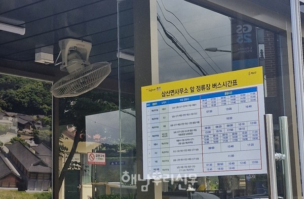 매년 무더위가 더해지고 있는 가운데 노령층과 학생들이 주로 이용하는 버스 승강장 천장에 선풍기가 달려있다. 대부분 자동차를 이용하기에 이 풍경이 새삼 새롭다.