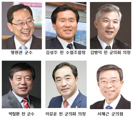 현재까지 거론되고 있는 민주당 경선 참여 인사들은 명현관 현 군수에 김성주 전 수협조합장, 김병덕 전 군의회 의장, 박철환 전 군수, 이길운 전 군의회 의장, 서해근 의원이다.