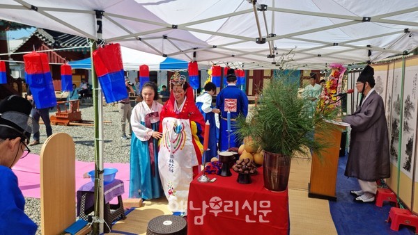 오는 9월 중 진행 예정으로 두~셋쌍을 대상으로 모집하고 있으며, 전통혼례식을 경험하고자 하는 연인 관계의 남·여도 참여가 가능하다.