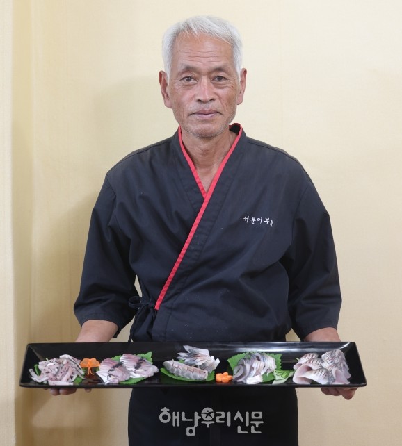 해남으로 귀어한 고광오(64)·오귀옥(68) 부부가 10여 년째 지키는 ‘서툰어부가’에서는 전어를 회·초밥·구이·무침으로 풀어낸다. 고광오씨는 이 코스 한 상을 전어의 끝판왕이라는 뜻을 담아 ‘하이엔드 전어’라고 이름 붙였다.