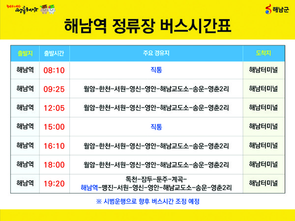 해남군은 철도 개통에 맞춰 버스 시간표를 정비하고, 철도 연계 관광상품도 내놓았다.