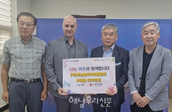 영국계 글로벌기업인 ‘라이트소스BP’가 추석 명절을 맞아 지역주민을 위해 사용해달라며 500만원 상당의 물품과 현금을 황산면에 기탁했다.