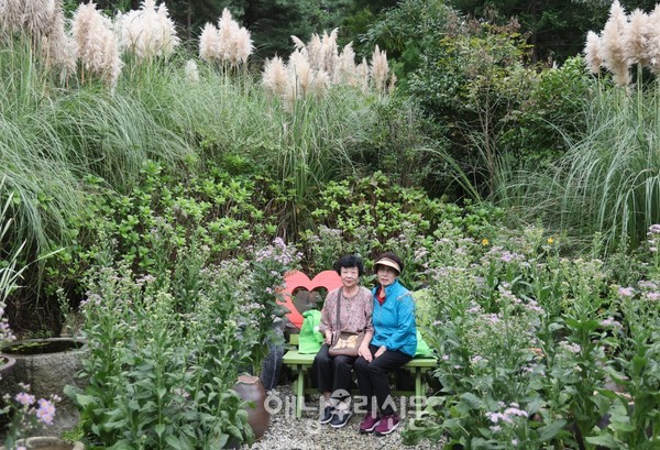 분홍빛 뭉게구름이 내려앉은 듯 가을 동화 속 풍경이 현산면 포레스트수목원에서 펼쳐지고 있다. 가을의 반가운 풍경인 핑크뮬리와 팜파스그라스가 한창이다.