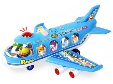 다양한 효과음과 불빛으로 실제 비행기를 타는 듯한 재미를 느낄 수 있으며, 문을 여닫으며 탑승하는 역할 놀이도 가능, 특히 아이들이 좋아하는 뽀로로와 친구들이 함께 하는 신나는 비행기 놀이 완구.