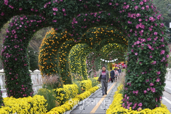 10월31일부터 11월2일까지 열리는 해남미남축제장을 찾아온 국화꽃 단지가 황홀한 색과 향으로 길손들을 반긴다. 야간에는 조명도 켜져 가을 국화향과 빛의 향연이 더욱 눈길을 끌 것으로 보인다.