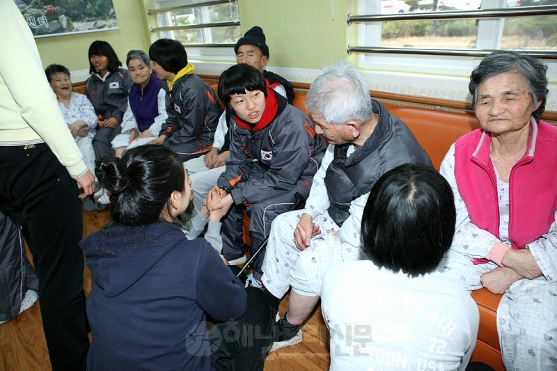 해남에서 동계 전지훈련을 받고 있는 펜싱 국가대표 후보팀 김창곤 감독과 선수 60여명은 지난 27일 옥천노인요양센터를 찾아 위문품을 전달하고, 봉사활동을 펼치며 구슬땀을 흘렸다.