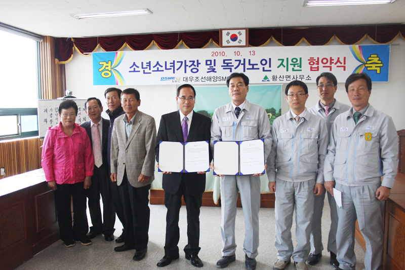 한편 대양조선해양 SMC(주)는 황산면에 거주하는 편부모 자녀와 독거노인 등 5세대에 매달 20만원씩 지원할 계획이다.