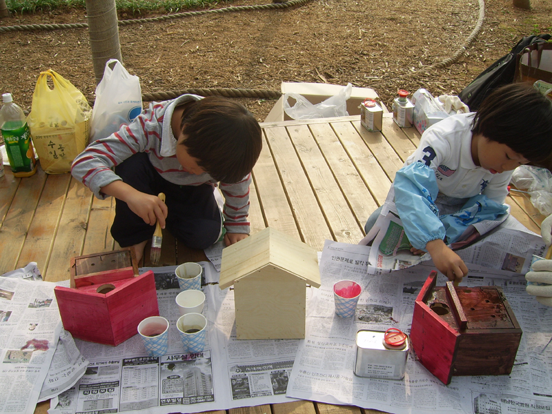 가족봉사단 회원과 자녀 등 20여명이 참가한 이날 행사에서 어린이들은 새집에 색칠을 하고 주변을 청소하는 등 재미난 봉사체험을 했다.