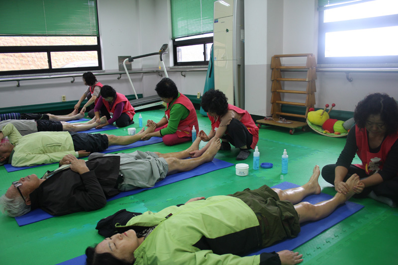 해남군 지역여성위원회가 펼치고 있는 발마사지 봉사활동이 지역민들로부터 호응을 얻고 있다.