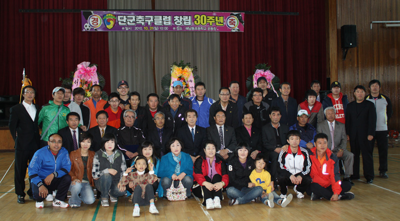 김석현 초대회장은 이날 축사에서 홍익인간의 이념으로 시작해 선후배들이 각종 난관을 헤치고 한 마음으로 똘똘 뭉쳐 해남의 명문 축구클럽으로 발돋움했다며 앞으로도 하나된 단군가족을 위해 최선을 다해나가자고 당부했다. 박태정 기자/
