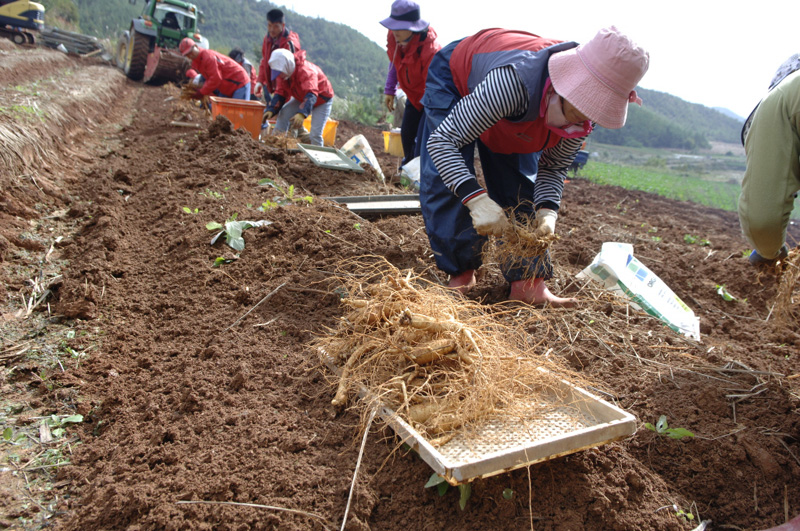 오는 11월 중순까지 수확되는 해남 인삼은 전량 인삼공사와 계약재배로 생산되며, 10a당 조수입이 2400만원이 넘는 고소득 작목이다.