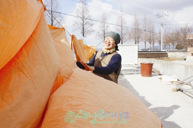 해남에서 황토염색하면 떠오르는 이. 삼산면 매정리 오명례(50)씨가 그 주인공이다.