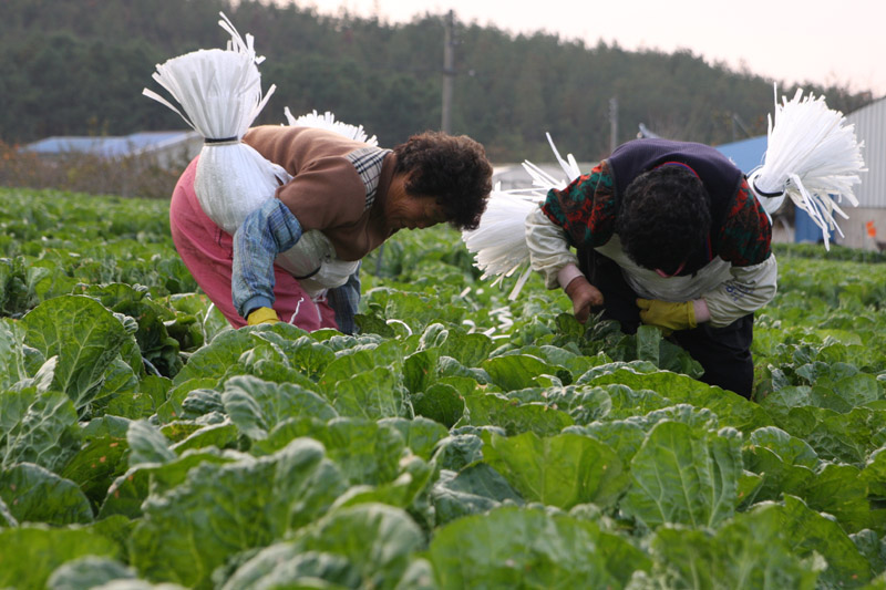 배추묶기는 김장 배추뿐 아니라 겨울배추도 묶어야 해 12월 말까지 계속된다.