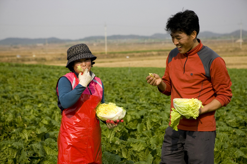 노랗게 물든 배추 속을 들여다보는 노 씨와 김 씨는 갈증해소에는 물 대신 배추가 제격이라며 다정스럽게 배추 한 잎을 떼어내 나눠먹는다.