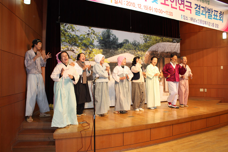 이날 발표회에서는 그동안 배운 노인들의 음악 공연과 연극이 곁들여졌는데, 김양금 외 14명의 노인들이 부른 가요 ‘사랑해’와 ‘아름다운 것들’ 합창에 이어, 곽영순 외 9명의 노인들로 이루어진 연극 ‘순이의 눈물’이 공연됐다.