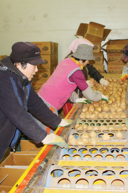 땅끝황토는 경쟁력 없는 개별 납품을 지양하고 공동출하 방식으로 돌파구를 마련했다. 개별 농가에서 생산한 겨울감자는 모두 현산면 일평리에 있는 공동선별장에서 작업을 거친 후 원구매자에게 납품을 하게 된다.