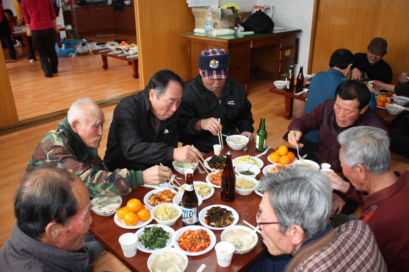 지난 15일부터 17일까지 3일 동안 진행된 경로잔치는 거동이 불편한 노인들을 위해 해당 마을에서 각각 열렸다. 경로잔치는 이음회가 행사 경비를 부담하고 마을 부녀회가 음식을 장만했다. 떡국, 과일, 음료수, 그리고 정갈하게 조리한 반찬이 오른 밥상을 대한 노인들은 서로 덕담도 건네 마음의 정을 나눴다.