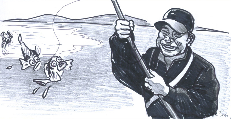낚싯줄을 원하는 포인트에 던진 다음 잽싸게 낚아챈다. 그러면 낚시 바늘에 짱뚱이가 주렁주렁 매달려 온다.