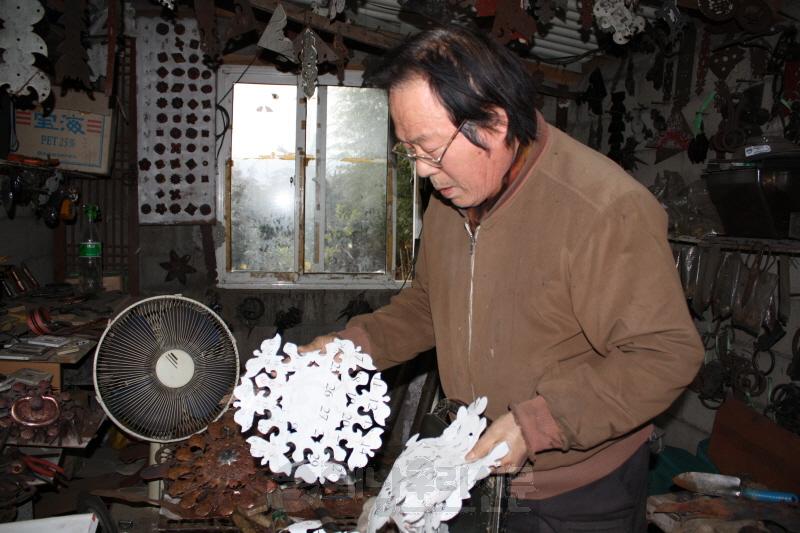 유씨는 주로 문과 관련된 장식품들을 만들고 있는데, 재미있는 것은 대문 문고리 옆에 달린 둥그런 장석은 집 주인이 쓰는 갓 테두리와 연관이 있다고 한다. 선비의 집은 원이 크고, 평민의 집은 작다고 하니 대문만 보고도 그 집 주인의 신분을 짐작할 수 있다는 얘기다.