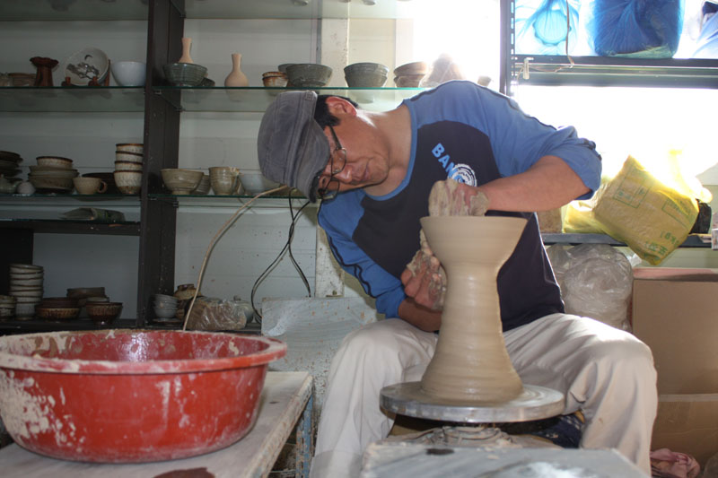 도자기를 빚을 때면 인생도 도자기와 같다는 생각이 든다고 말하는 김씨는 흙을 떼어 물레의 중앙에 올리고 손에 적당히 물을 바른 다음 물레를 돌린다. 김 씨는 물레질은 중심잡기가 중요하단다.