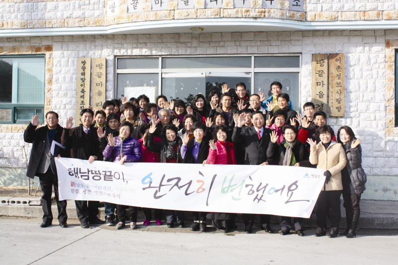 지난 12일 땅끝마을 음식업 대표 30여명이 마을회관에 모여 친절한 땅끝, 다시오고 싶은 땅끝, 맛있는 음식이 있는 땅끝을 만들자는 결의대회를 가졌다.