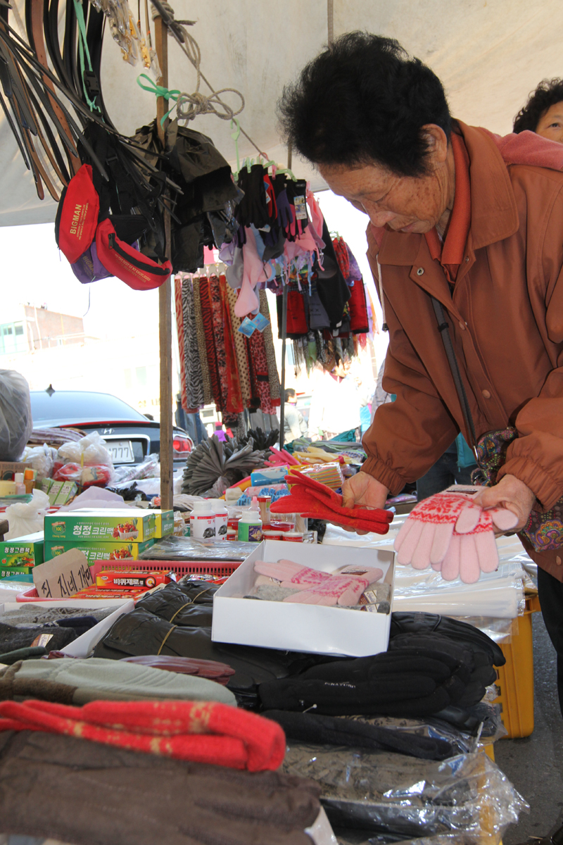 삼산면 송정리 김오례(79)할머니 손에도 겨울이 왔다. 지난 26일 할머니는 겨울을 함께 보낼 털장갑을 사러 해남장에 나왔다. 어떤 것이 좋을까. 한참을 고심하던 할머니, 겨울 내내 할머니 손에서, 머리맡에서 온기를 줄 장갑. 할머니는 빨간 장갑을 추켜든다. 박영자 기자/