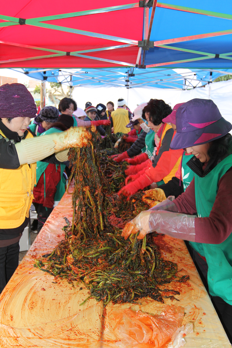 산이면 부녀회(회장 윤현순)는 배추김치를, 생활개선회(회장 박숙희)는 갓김치, 산이면 자원봉사회(회장 주채심)는 물김치 재료를 준비해 정성스레 버무렸다.