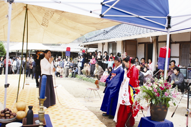 결혼식 후 문화행사가 이어졌는데 토담 김종수씨의 축시 낭송과 신부 친구인 마승미씨의 민요, 신부집 조팝꽃 아래서 김영자씨의 한량무가 공연됐다.