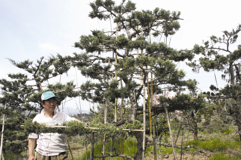 그러나 나무를 아름다운 조형물로 탄생시키기 위해서는 그 나무의 특성을 이해하고 그 특성에 맞게 수형을 관리해야 진정 아름다운 예술품으로 탄생한다고 강조하는 고수홍(63·계곡면 선진)씨는 나무 조형예술에 푹 빠져 살고 있는 이다.