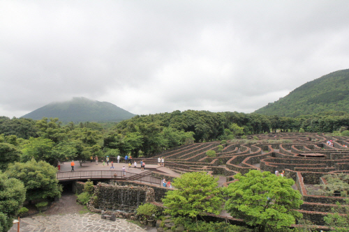 돌미로는 세계 최장 석축 미로로 길이 2261m, 높이 1.8m, 제주 현무암 2144톤으로 만들었으며 누워있는 돌하르방 형상이다.