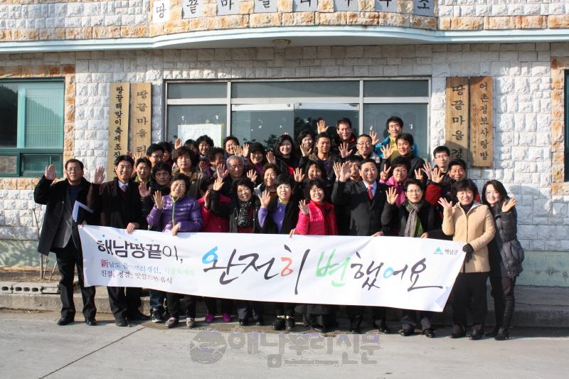 지난 12일 땅끝마을 음식업 대표 30여명이 마을회관에 모여 친절한 땅끝, 다시오고 싶은 땅끝, 맛있는 음식이 있는 땅끝을 만들자는 결의대회를 가졌다.