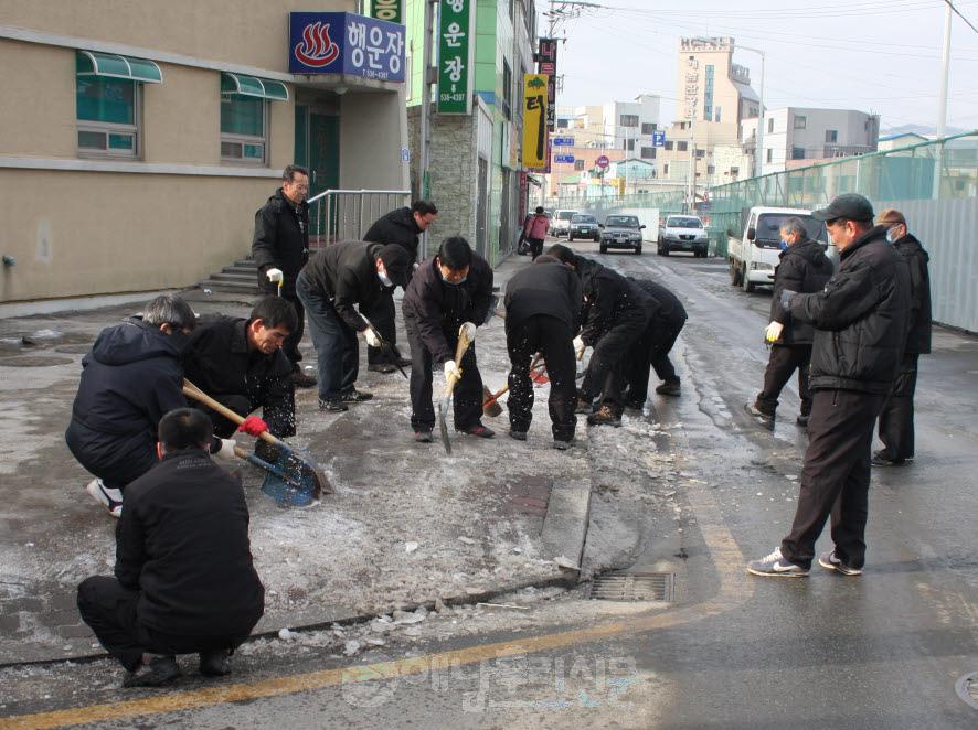 군은 주요 간선도로의 노면의 경우 제설작업으로 원만한 차량통행을 이루었으나 좁은 골목길과 응달진 곳 등은 빙판으로 남아 지난 19일 빙판 제거 작업에 나선 것.