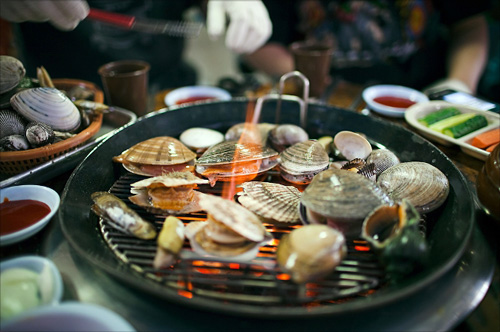 목장갑을 낀 손과 젓가락의 향연이 벌어질 이곳은 굴, 대합, 백합, 가리비, 키조개, 소라, 굴 등 다양한 조개들이 주인을 맞이하기 위해 작은 난타 공연을 선보인다.