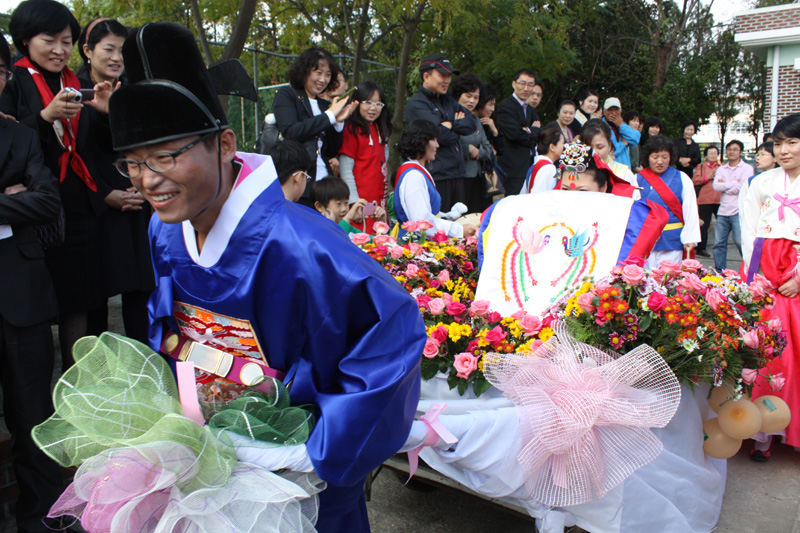 연신 싱글대던 신랑이 신부를 업고 퇴장하자 하객들도 그들의 걸음걸음에 맞춰 힘찬 박수로 화답을 한다. 1시간 반 동안 진행된 혼례식을 본 하객들은 모처럼 흥겨운 전통혼례를 보게 돼 기쁘다며 이런 혼례가 자주 있었으면 좋겠다는 반응을 보였다.