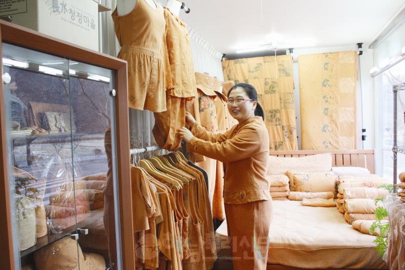 황토에 푹 빠져 사는 최씨의 가게에는 실내복과 반바지, 속옷을 비롯해 침구세트, 방석, 커튼 등 너무도 다양한 제품들이 선을 보이고 있다.