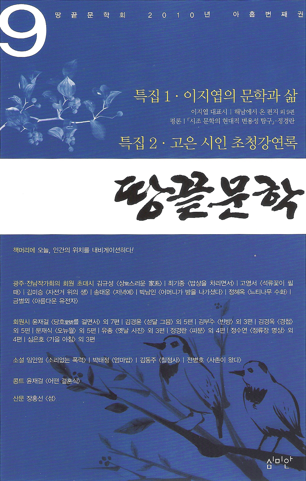 땅끝문학9호는 광주․전남작가회의 초대시와 회원시․소설을 비롯해 이지엽의 문학과 삶, 고은 해남초청 강연록인 ‘고은이 말하는 김남주와 고정희’가 특집으로 수록돼 있다.