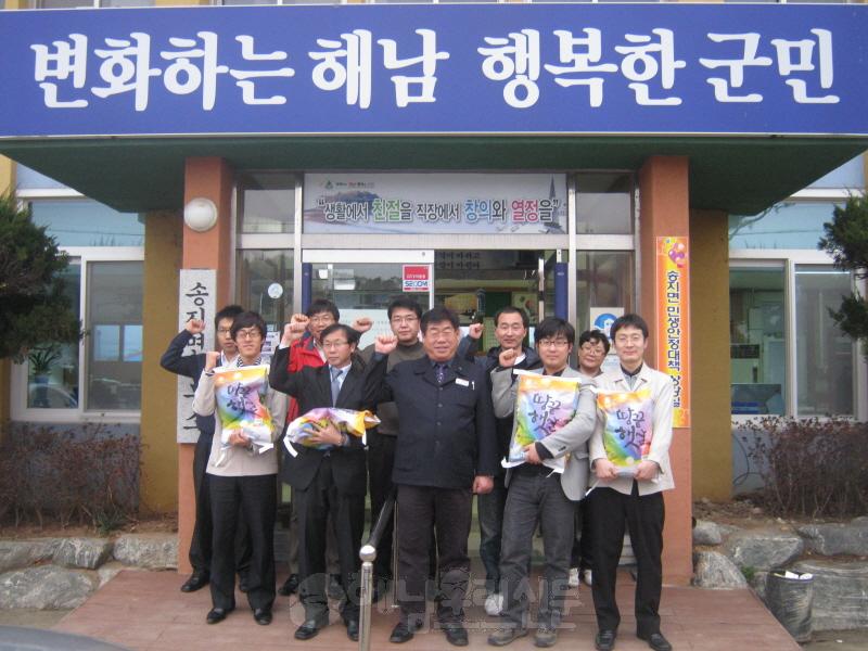 송지면(면장 노성철) 직원들의 쌀 판매는 3년 전 국가정보원 퇴직자 모임인 양지회와 자매결연을 맺음으로서 시작됐다. 전국에 걸쳐 회원만 6000여명에 이른 양지회는 송지면과 자매결연을 맺은 후 3년 째 해남쌀을 구매하고 있고 향후 2년간 더 구매하겠다는 약속도 한 상태다.