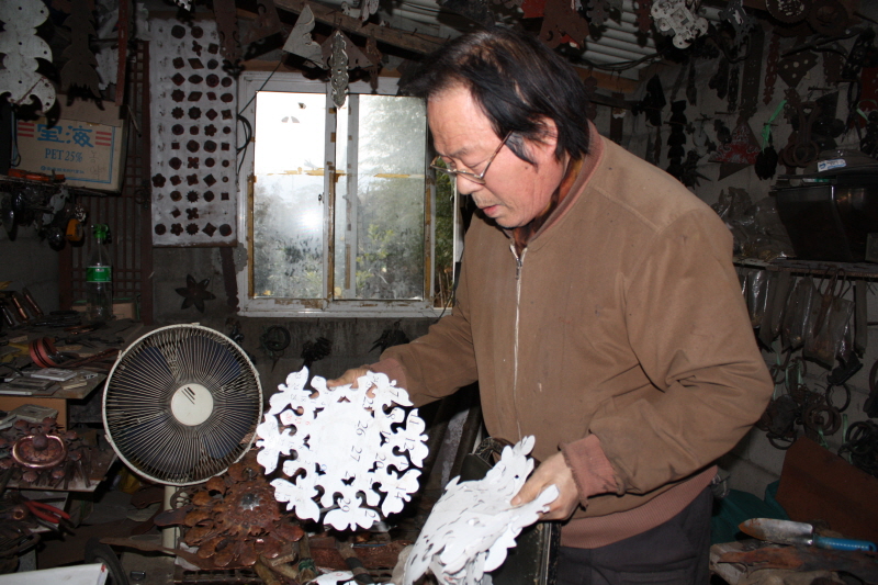 유씨는 주로 문과 관련된 장식품들을 만들고 있는데, 재미있는 것은 대문 문고리 옆에 달린 둥그런 장석은 집 주인이 쓰는 갓 테두리와 연관이 있다고 한다. 선비의 집은 원이 크고, 평민의 집은 작다고 하니 대문만 보고도 그 집 주인의 신분을 짐작할 수 있다는 얘기다.
