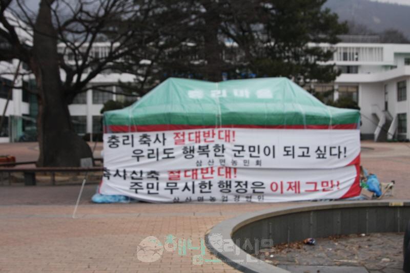지난해 12월 7일부터 마을 인근에 들어설 축사 신축 중단을 요구하며 천막 농성에 나섰던 삼산면 충리 마을 주민들이 지난 12일 천막농성을 마무리하고 자진 철수했다.